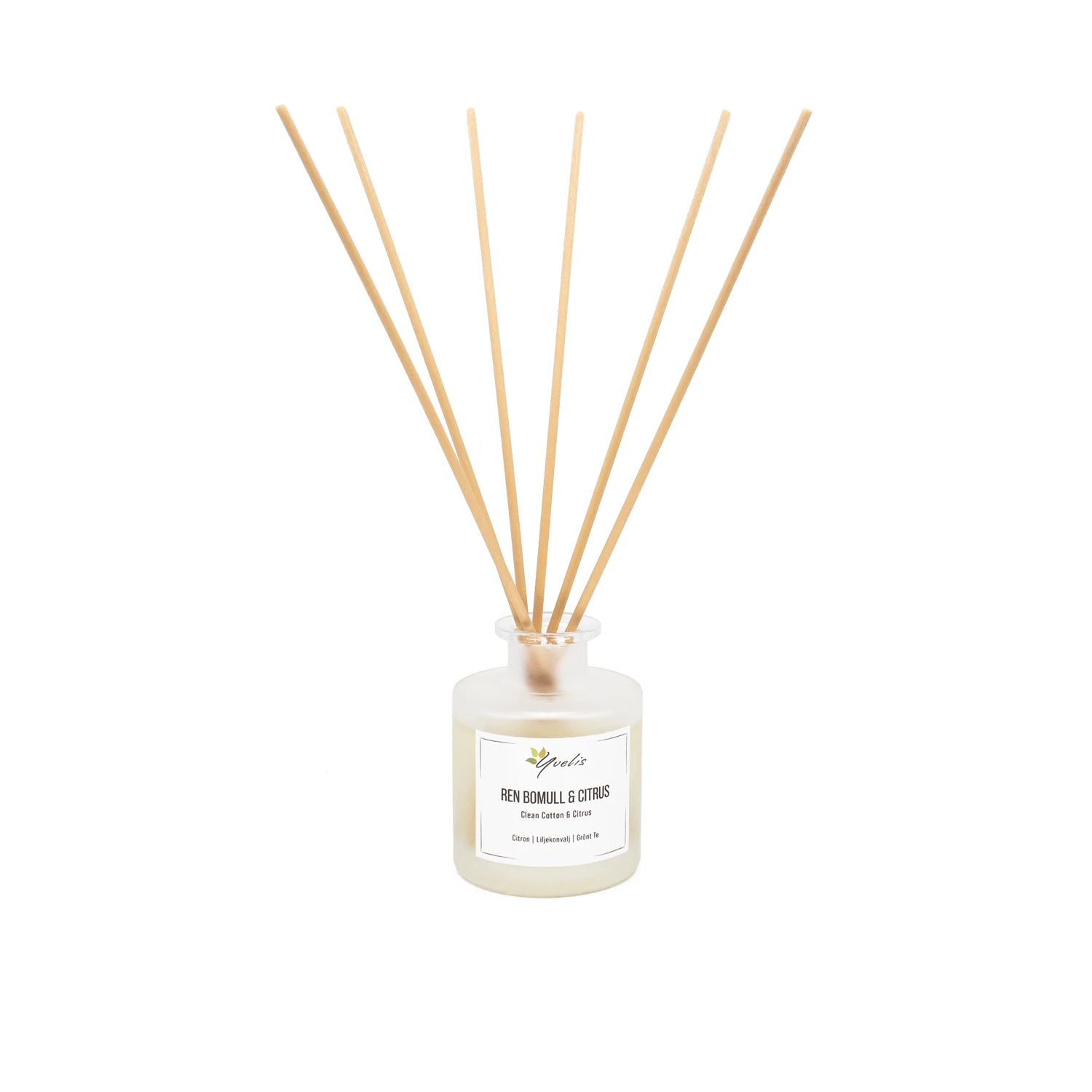 Clean Cotton & Citrus are the reed diffuser that spread a soft and fresh scent that is reminiscent of clean sheets that have been dried in the summer sun. With top notes of lemon and green leaf tones, a light and refreshing tone is given that gives freshness to the scent. Heart notes consist of green tea, lily of the valley, lavender and mild mint add a cool and airy feeling that gradually transitions into a warm and powdery base of sandalwood and musk. An incredibly fresh and fresh scent that suits you who want a tone of purity in your home - without being stuffy.