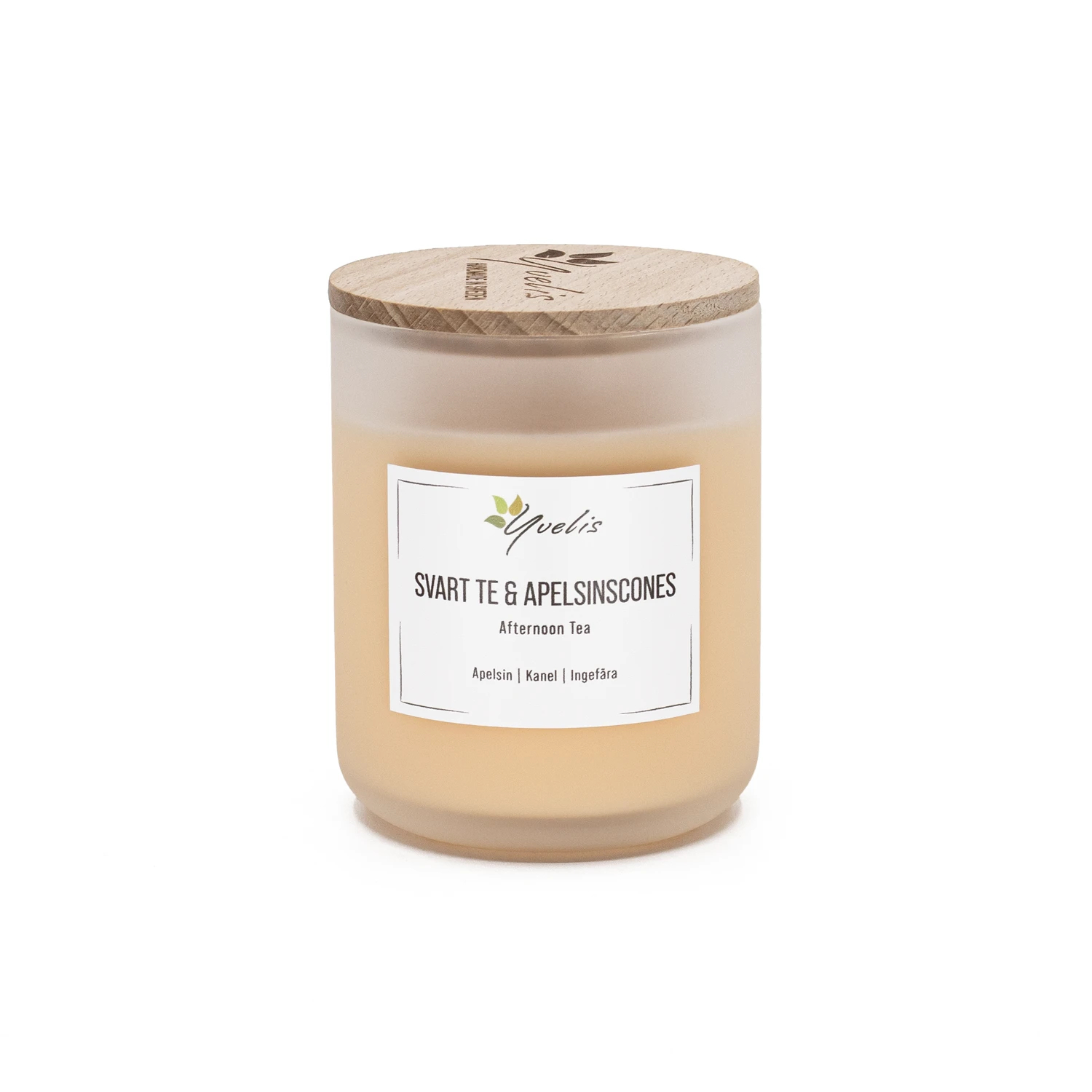 Svart Te & Apelsinscones är ett doftljus med en varm och lite kryddig doft som passar särskilt fint när dagarna blir mörkare. Doften öppnar med en frisk ton av apelsinzest som sedan blandas med mjuka kryddor som kanel och ingefära. I basen finns tydliga toner av nybryggt svart te, nygräddade scones och en mild sötma från karamell.